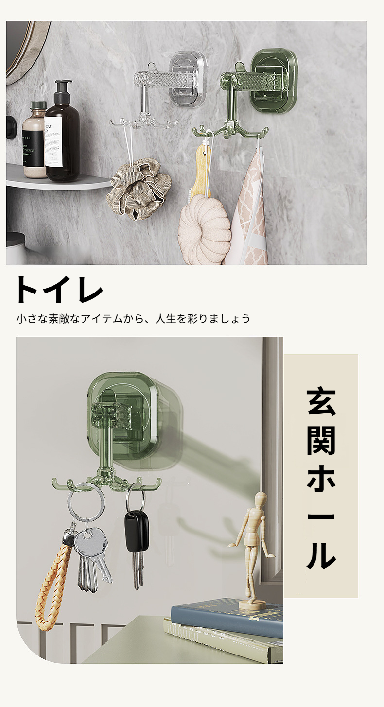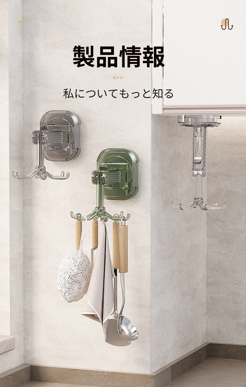 360度回転可能な吸盤式キッチンツールフック6個セット