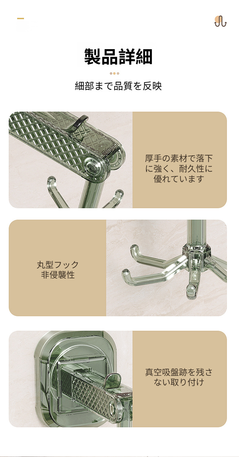 傷つけず簡単に設置できる吸盤フック