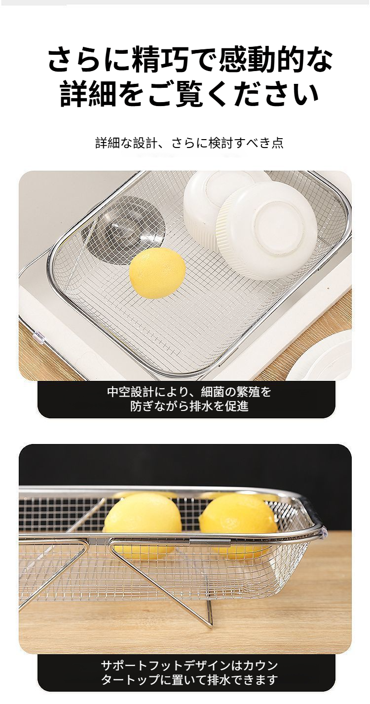 304ステンレススチール製排水バスケット、引き込み式家庭用キッチンシンク排水ラック、野菜洗面器、食器ボウル収納ラック